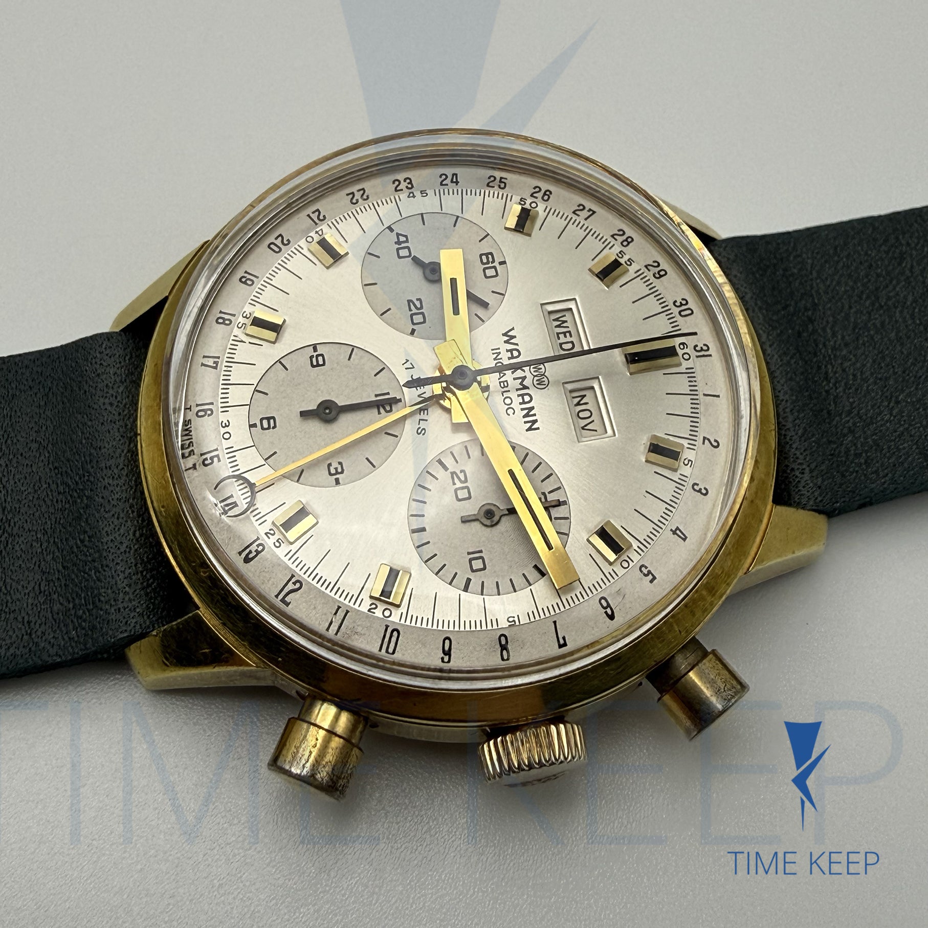 Vintage Wakmann Chronograph Triple Date Valjoux 730